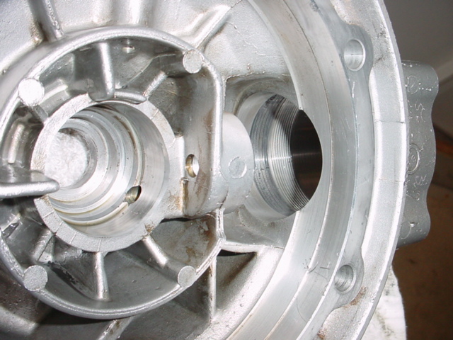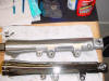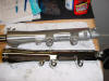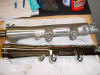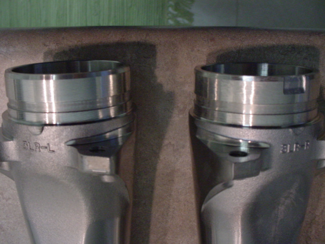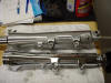 During the cold weather I decided to correct some of my earlier mistakes such as not having the fork lowers chromed.. Since I like the fork guards, I ordered a set of fork lowers for a 2002 Vmax which have provisions to mount these correctly versus using silicone. I had them machined for the thundercat rim. Below are pics of the 2002 lowers after they were modified to accept the thundercat rim.