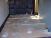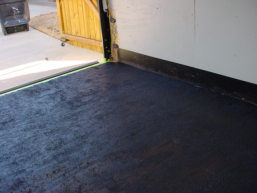 Recessed D-rings removed, floor prepped. Herculiner rolled onto floor,