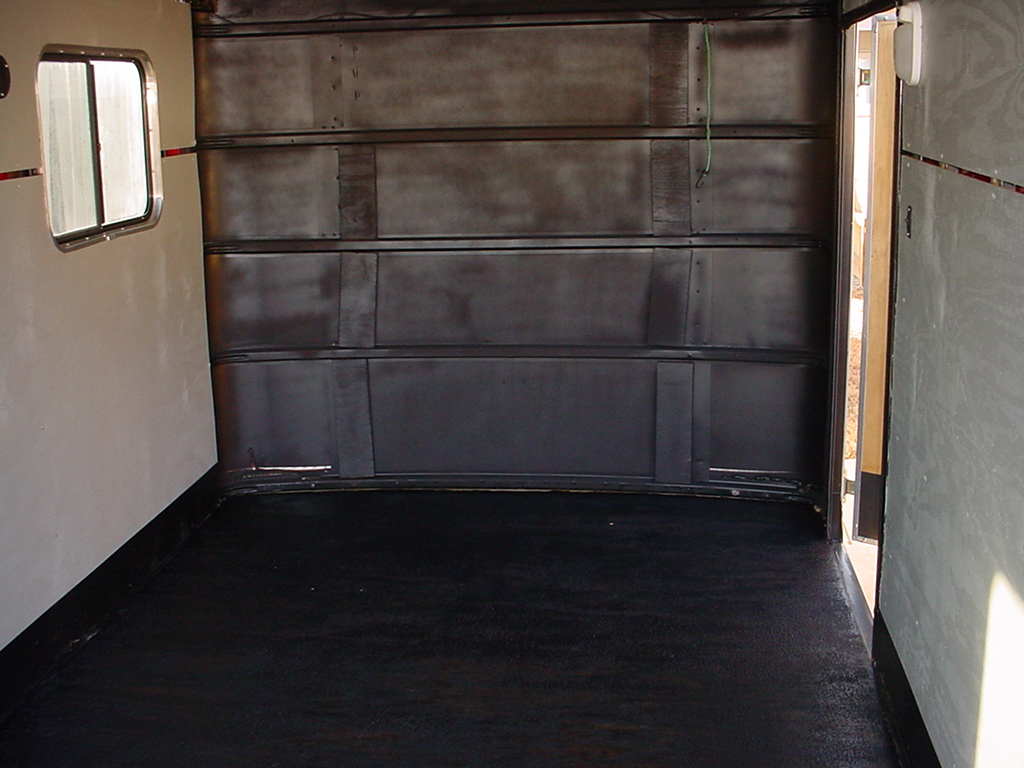 sidewalls painted grey. Front wall removed and undercoated. Trim removed.