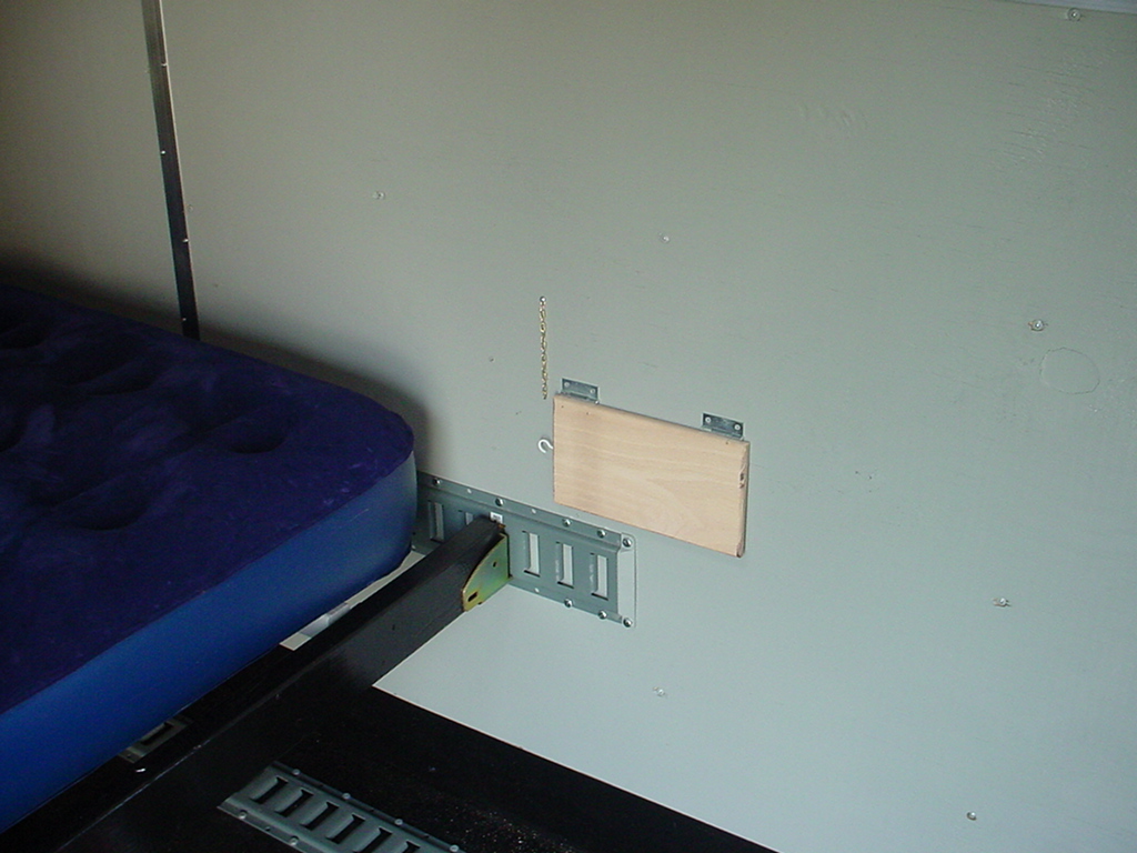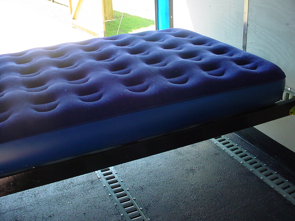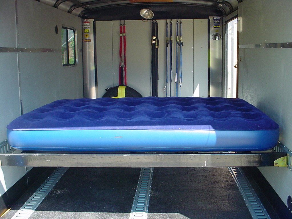Custom built bed frame utilizing e-track. Assembly in about ten minutes.
