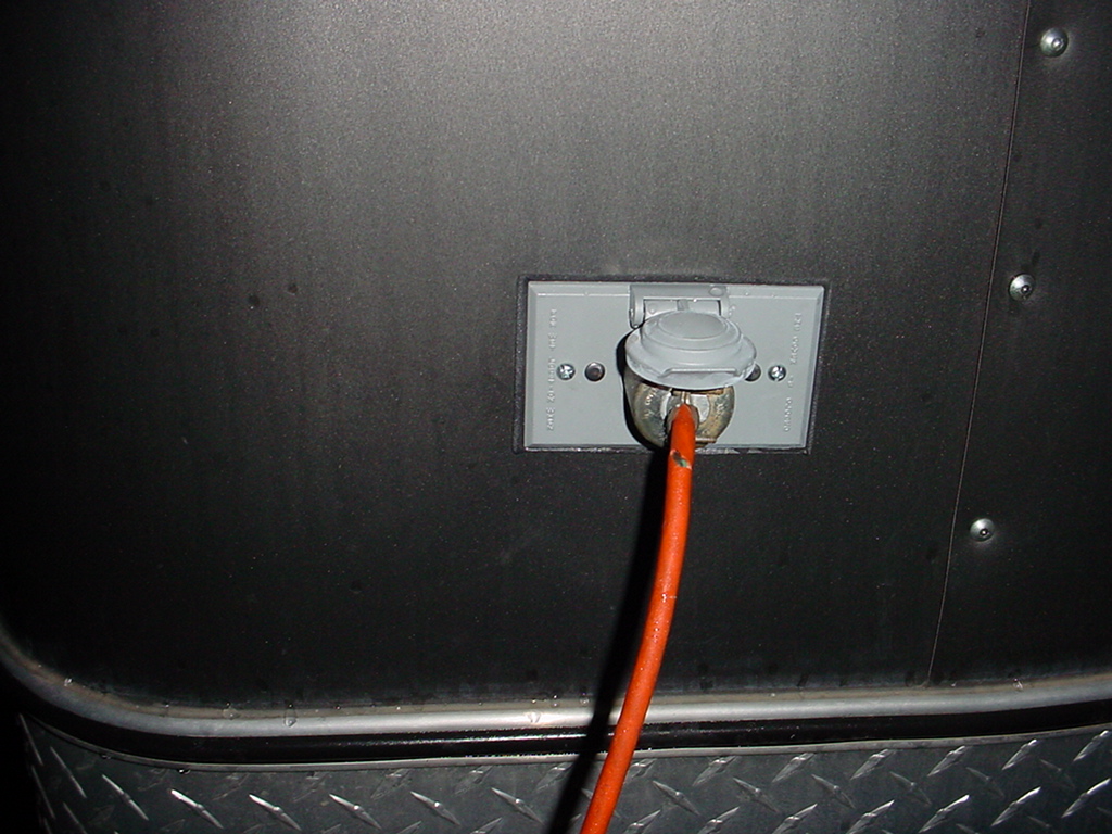 Led down lighting, external receptacle added to get 110 into trailer. GFC