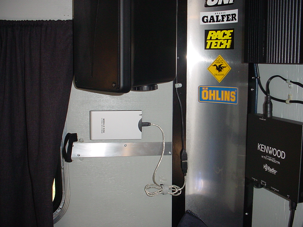 2.5" hard drive in usb enclosure. Stores mp3s which are read by head unit.
