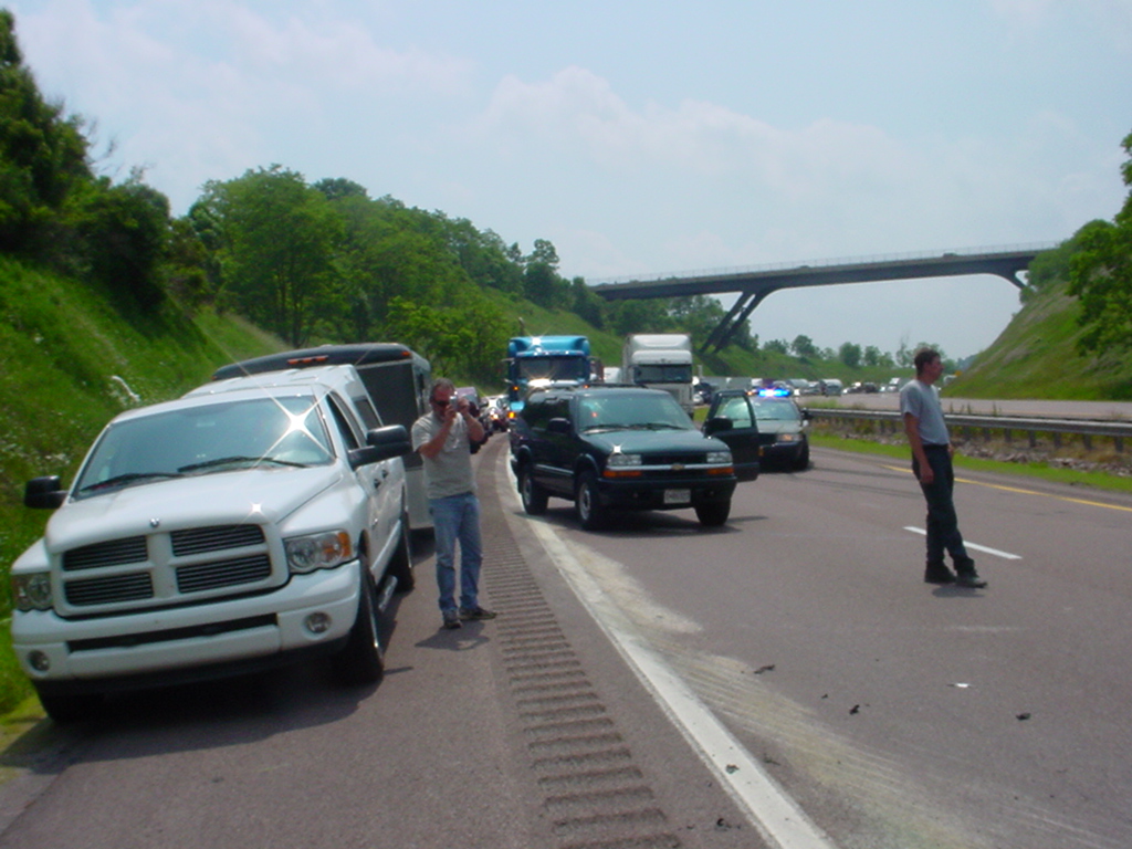 Encountered a nice wreck on the way.. I don't know how the truck stayed upright.