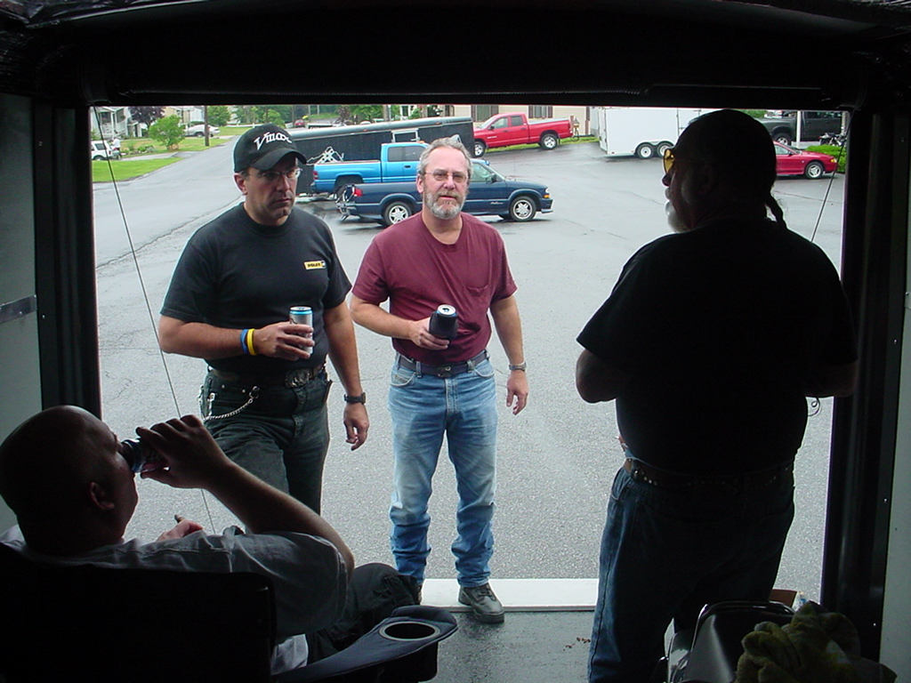 In my trailer at Thunder.. much rain so we hung out and drank beer. Bob Novie sitting, Mike Costa, Steve Lynch and Chuck Lombardo.
