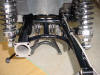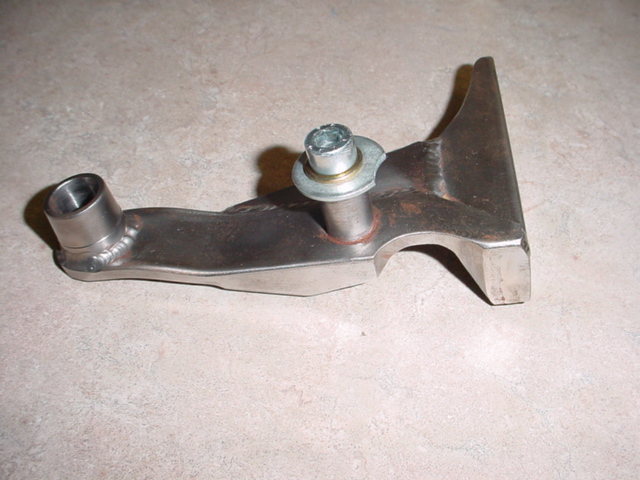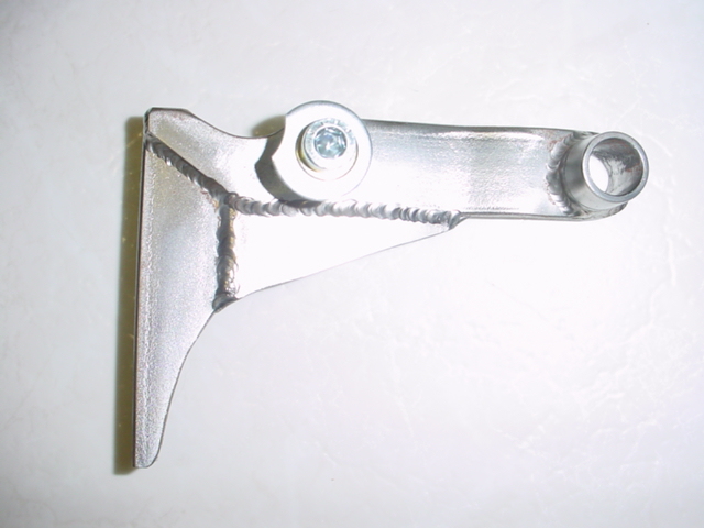 This is a completed arm as it was returned from PCW. I chose not to have it powder coated by PCW since I needed to test fit first. The shock mounts were moved back to retain the stock angle. The last two pics above are of the left side shock relocation bracket.