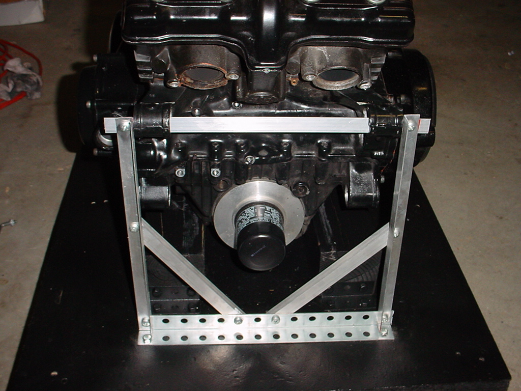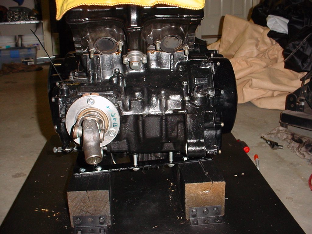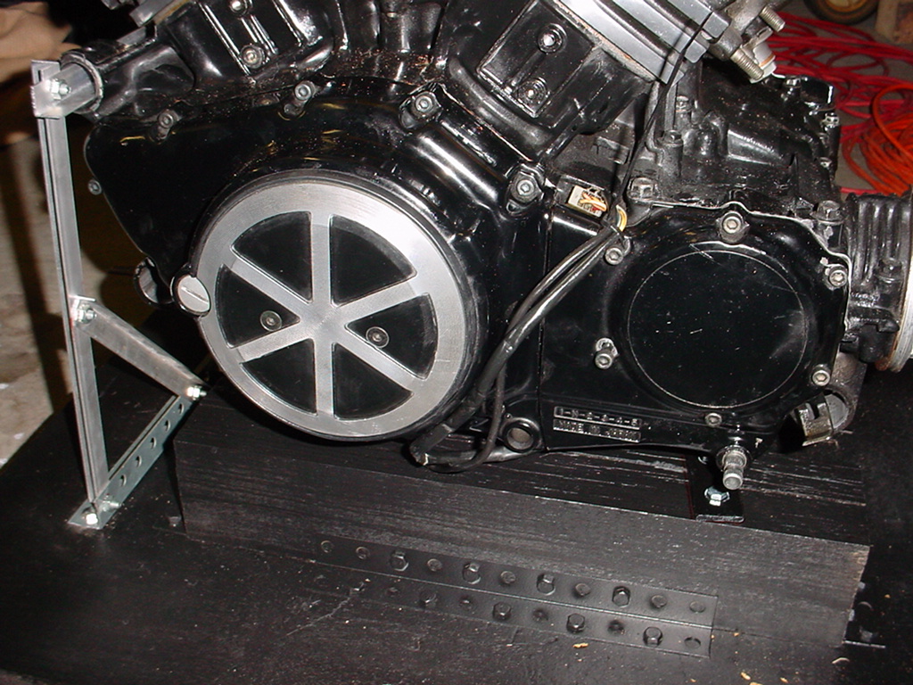 Rear of engine showing how it was secured to 4X4s. Used steel flat bar