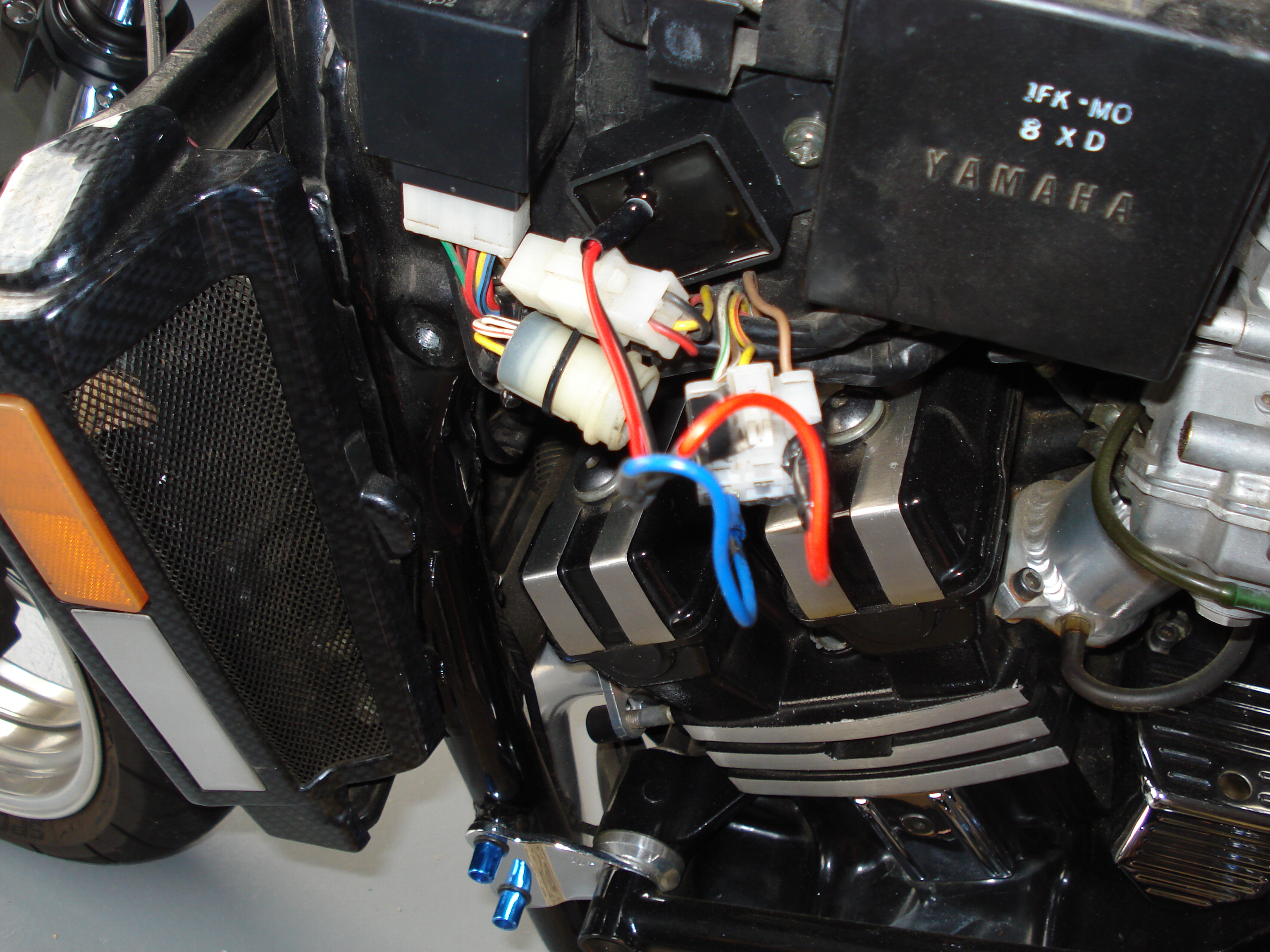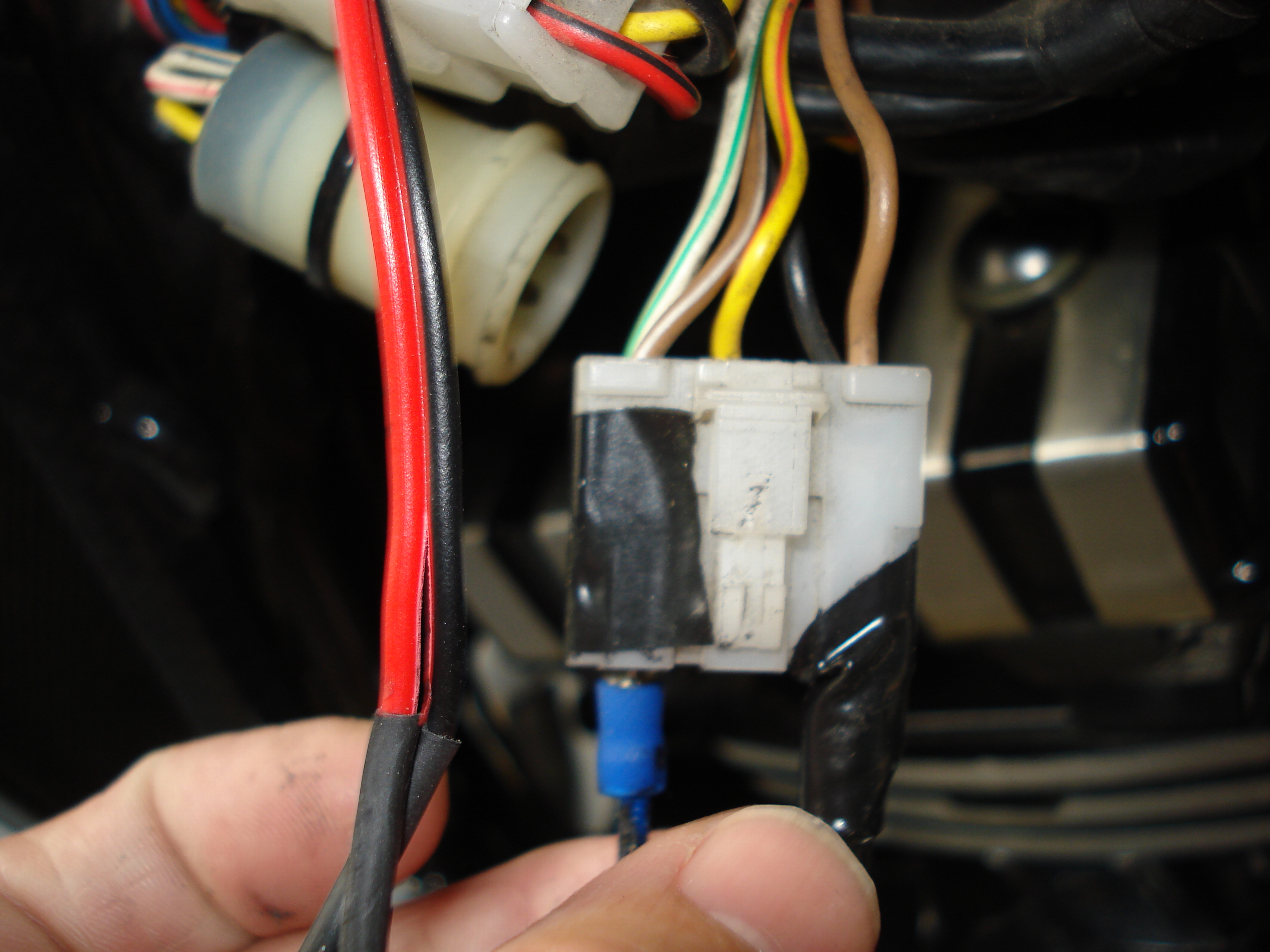 wire from flasher goes to brown/white on vmax harness, red wire from flasher