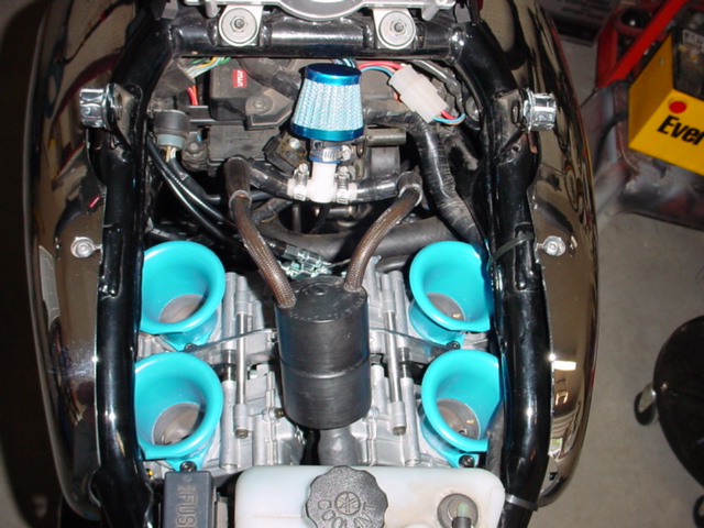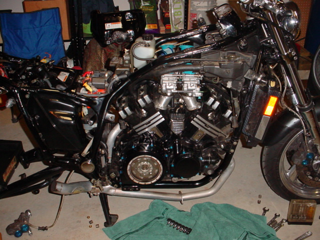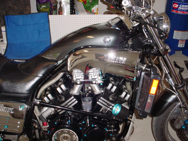 After riding a 200rwhp Vmax in March of 2003 I was hooked.. If you're ever offered a chance to ride a Vmax like that, don't do it! Your wallet will never forgive you. In October of 2003 I rode Rich Scharf's 1500 built by Gino of Evolution Engines in Oceanside NY. That pretty much sealed the deal. Purchased a second vmax motor then contacted Gino and discussed my options.