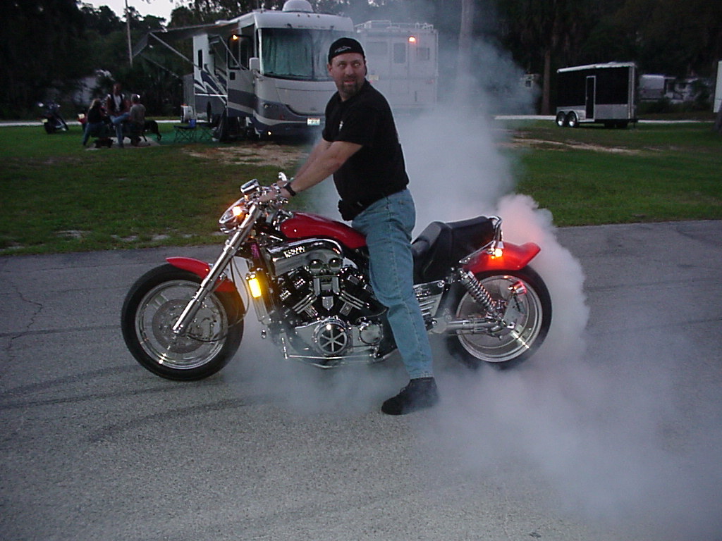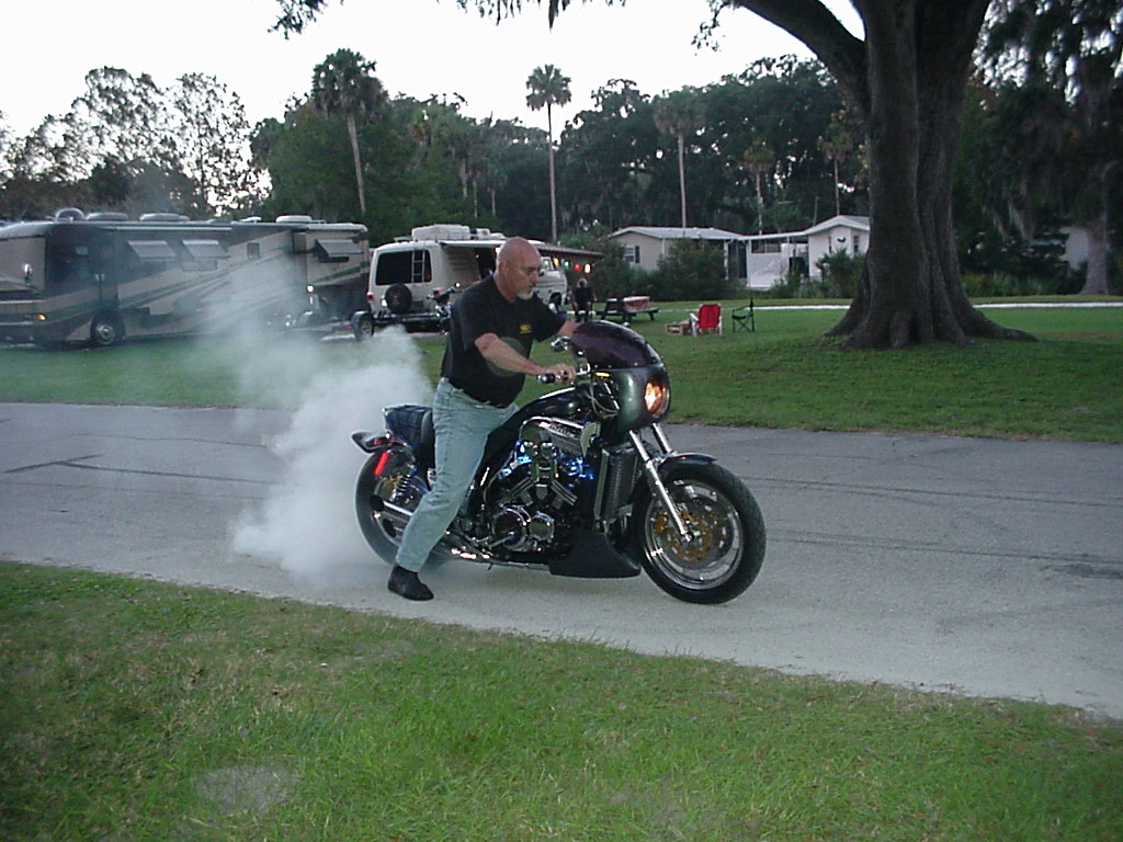 Myself doing a rolling burnout on Steve Lynch's Vmax
